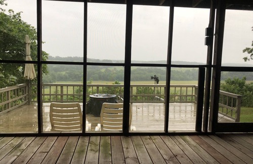For a leisurely vacation we have just what you are looking for! This home has a magnificent view of the White River, sunsets, wildlife, and boats going up and down the river loading up on beautiful trout. The view, located high on the bluff looking down on the river and fields, is so breath taking. Cotter, the Trout Capital of America, is minutes from Bull Shores and Norfolk lakes. All though there is no river access from the bluff, the Cotter boat dock, bank fishing and White Sands Cafe are about five minutes away. You can fish the river or lakes (20 minutes) or just sit on the large deck or eat in the screened back porch. We think the view and setting around the fire pit are as much fun as catching Browns and Rainbows. Also, a day trip to Branson (1 hour 20 minutes) is a good break. We like to fish and then make a day trip tp shop at the Bass Pro Shop, outlet malls or take in Silver Dollar City. The house is very homey, offers all the amenities, and boat parking. We think you will love it as much as we do! We have two King beds and one bunk bed.