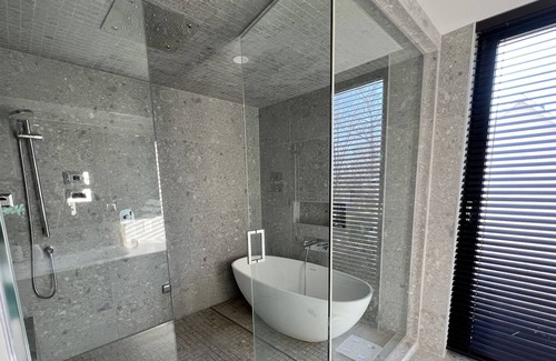 As you settle into this 4-bedroom, 4-bathroom rental, you'll find a BBQ grill, air conditioning, a desk, and local meal delivery service. Bathroom amenities include a hair dryer, towels, and toilet paper. The kitchen is equipped with an oven, a stovetop, and a refrigerator, as well as a coffee maker, an electric kettle, and an ice maker. And you won't have to pack extra clothes, because you'll have a washer and dryer, too.