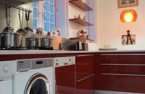 Prepare a home-cooked meal in the kitchen, complete with an oven, a stovetop, and a refrigerator, as well as a coffee maker, an electric kettle, and a microwave. Bathroom amenities include a hair dryer, towels, and toilet paper. And you won't have to pack extra clothes, because you'll have a washer and dryer, too. Other amenities include bed sheets, an ironing board, and heating.