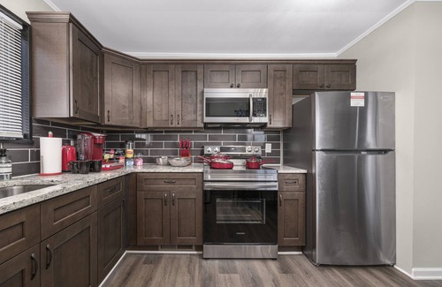 Magnolia "620" is a beautifully remodeled apt. located in a 6-plex unit. This apartment is designed to make short term stays comfortable & enjoyable. From high quality mattresses & pillows to over 75 amenities packed in, you will be hard pressed to find a better "bargain." King-size bed in bedroom with 4k Roku TV. Trundle bed in living room w/ 2 twin beds. Fully stocked kitchen w/ granite countertops & stainless steel appliances. Great for kids as well w/ high chair, pack-n-play & kids utensils.