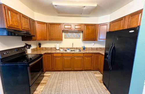 This modern remodeled apartment is the perfect location for your stay in Spearfish! There are two oversized bedrooms – each outfitted with King size beds and two closets, as well as a desk in one of the rooms. A queen size sleeper sofa is in the living room. Make yourself comfortable in the open living/dining area or step onto your private outdoor patio with side yard (not fenced). You’ll be only 1 mile away from downtown Spearfish with shops, eateries, coffee shops and more all within reach!