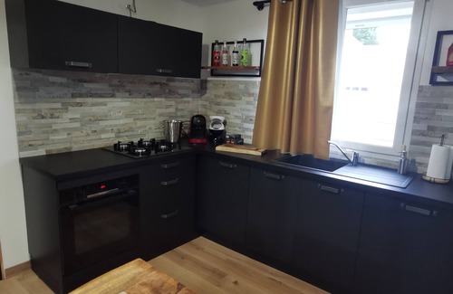 La cuisine est équipé de son four micro onde frigo grille pain bouilloire.