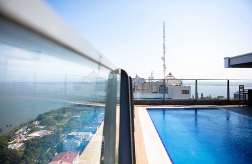 The apartment is located on a high floor, in the Toprak building, situated on the cross of Julius Nyerere with Avenue 24 of July.