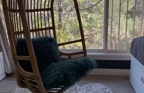 Welcome to the first edition of Maison Solange! This dreamy modern boho cabin is up 40 steps from the driveway to the first floor, the cabin feels like it's in a treehouse, private and serene. Peek-a boo views of Bear Mountain Resort from the front decks. Close to Bear Mountain and Snow Summit resorts, Alpine Zoo, downtown Moonridge and Golf Course! The cabin is great for couples, solo adventures, remote working, and all families. The location is close to everything!! We have 2 bedrooms with a Queen in Primary and 2 twin beds in second bedroom.