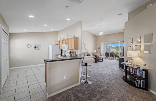 Majestic Palms is one of the newer communities to establish itself in the ever popular South Fort Myers area. The home itself is a 3 bedroom/2 bathroom corner unit offering over 1,700 square feet of living space, making this one of the largest condo style homes in the area. Guests will delight in the upgrades throughout the home and beautiful views over the community lake. The home is open plan in design making it bright and light and has a very large private screened lanai, thus offering guests plenty of tropical living space to enjoy the wonderful outdoor lifestyle Florida is famous for.