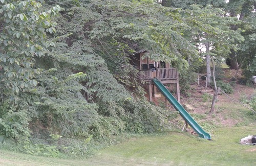 Very spacious 3 bedrooms and 2 baths country cottage (Additional efficiency, 1 bedroom/1 bathroom available to rent ) overlooking the Blueridge Mountains. Large open family room and kitchen. 2 Queen beds, Bunk bed with two twins, and a day bed (2 twins.) Additional 1/1 available for large parties (not rented out alone, only as part of this vrbo). Private pond, 170 acres with lots of trails to explore. Firepit, basketball hoop, swing set, fort, pickleball court, fishing, and more.