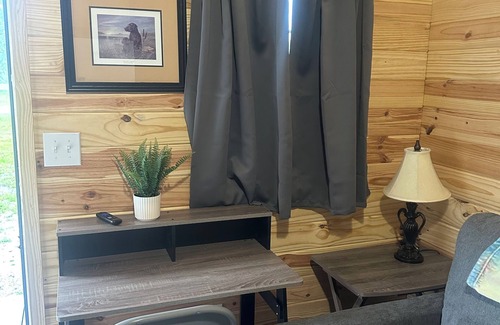 Discover this marvelous 1-bedroom gem in Stevenson. This cozy cabin features 1 full bed and 1 sofa bed, perfect for a small group of guests. Enjoy the convenience of WiFi, heating, and a washing machine during your stay. With AC to keep you cool and a coin laundry for added convenience, this cabin has everything you need for a phenomenal getaway. Perfect for all sportsmen and families, with historic Fort Harker , Stevenson Railroad Museum , Russel Cave National Monument, and Lake Guntersville within walking distance . We look forward to hosting you at our place.
