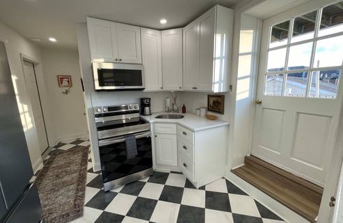 ✨ Discover your serene getaway in our spacious studio apartment, featuring a luxurious king bed, a separate, fully-equipped kitchen, and an expansive western-facing deck for stunning sunsets and dining al fresco. Enjoy modern comforts, including a washer and dryer, in a prime location, just a leisurely stroll to Main Street. Perfect for business or leisure, it's a quiet respite, designed for memorable stays.