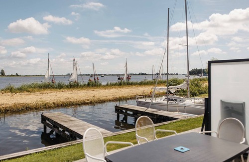 Enjoy peace, space and breathtaking views in this elegant thatched townhouse for 6 guests. The semi-detached villa spans two floors and offers a private mooring, a spacious waterside deck, and a beautiful rooftop terrace overlooking Lake Heegermeer.