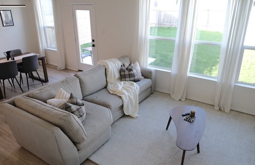 This home is in a peaceful area, tons of natural light with a fully-equipped kitchen and smart TV. Very family and pet-friendly, large fenced backyard, and neighborhood pool/parks.