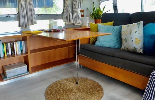This unique 31' American Airstream has been beautifully restored and decorated to provide contemporary accommodation with retro charm. It has a private Queen size bedroom, shower, separate wc, lounge/dining area with a double size sofa bed, plenty of storage space and a really well equipped kitchen with full size Smeg fridge, oven, microwave, kettle, toaster, Nespresso machine, quality cookware, crockery, cutlery, dinner-ware and glasses. There is Aircon/heating in the bedroom and a fan in the living area.