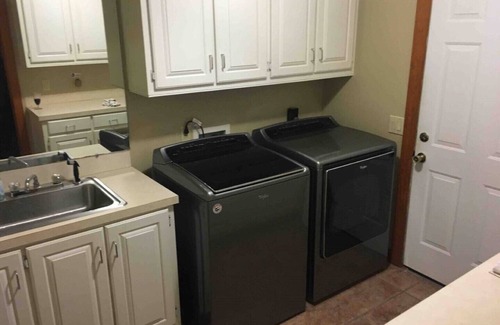 Three bedrooms, 2.5 baths, pullout couch queen, and an queen EZ Bed just plug it in 3 minutes its automatically inflates with 16 legs to give everyone a place to sleep its very comfortable .Also the whole inside has been freshly painted and the ground floor and master bedroom (new wood floor in the master .We love our Animals let us know if you have them Dogs and Cats welcome 50.00 pet fee per pet. upstairs has carpet no pets allowed .