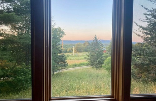 The two lower bedrooms (on the second floor) each have 3 pocket doors which can be opened for more open space or closed and locked for privacy. The second floor also has a couch set in front of many windows for a relaxing space and view. There are two yoga mats available for use, along with an exercise ball, games, puzzles, beach chairs and coolers. There are two hair dryers, an iron and ironing board, two suitcase stands upstairs, a fan in the upstairs closet for the few warm days in VT, extra blankets in the basket next to the TV, and HDMI and Apple cords to attach your tech to the TV. There are also a few leaves for the dining table in the closet under the stairs for larger family dinners.