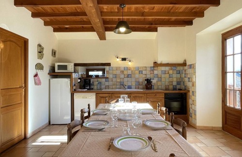 Pretty independent barn completely restored, on a 40 ha active dairy farm (manufacture and sale of cheese). Ground floor layout. Integrated kitchen (oven and microwave, fridge-freezer and ceramic hob, dishwasher), adjoining storeroom (washing machine). Living room, lounge area (TV). 3 bedrooms (2 double beds, 2 single beds), beds made for your arrival and towels included. Shower room, wc. Electric heating in supplement. Internet connection. Covered terrace, open ground 1000 m². Garden furniture, barbecue. 1 cot. Ping-pong. Very nice view of the mountains, away from the village. Near the owners' farm.