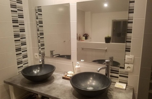 I propose a parental suite of 30 m ², with dressing, TOILET, 2 basins on plan and Italian shower. You will have a high speed WiFi connection. Possibility of adding a room for one person, of 11 m ².