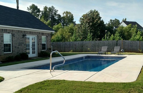 This gorgeous home is located in North Augusta only minutes from The Augusta National. The house sleeps 10 comfortably with 2 king size beds and 3 queens. Very large covered back porch with a TV and plenty of seating (Couch and Table.) This home also features a swimming pool and 800 sq ft shop. The shop features a TV, surround sound, fridge, dartboard, bar tables w/ stools. The perfect place to enjoy a cocktail after walking the course. The neighborhood is quiet enough to relax but close enough to enjoy the nightlife. The choice is yours!