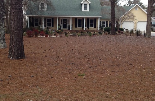 You will find everything you need in this 5 bedroom immaculate 2800 sq foot home that sleeps up to ten located on 1.3 acres with a large backyard (great space for outdoor activities). There is a deck with a charcoal grill and bean bag toss game. The home is only 5 miles from the Augusta National and 1.5 miles from Jones Creek Golf Course. It is 1 mile from the Savannah River and the historic Augusta canal where there is the opportunity to rent kayaks and bikes and take walks along the beautiful canal road or you can take a cruise down the canal. There are 5 bedrooms/3 full baths. The den has a cathedral ceiling, 2 comfortable recliners, couch and sitting chair with a 42" digital TV w/surround sound and many satellite channels (Golf Channel included). The dining room seats 8 and the breakfast area 6. The kitchen's stainless steel appliances include a dbl door refrigerator/ice maker, oven and microwave oven, and dishwasher. The kitchen is equipped with a Keurig coffee maker, blender, toaster oven, dishes, glassware and utensils. There is a washer/dryer in the utility room along with an extra refrigerator. The Master bath is huge and has double vanities. The Master bedroom has a king adjustable bed. There is another bedroom on the main floor with a single bed and a bathroom w/shower next to it. There are 3 bedrooms and a full bath on the second floor - one w/a king bed, one with a queen bed and one with a queen and a single bed. The home includes 4 digital TV's. There is also a living room with all new furniture offering another gathering area. It also has a large front porch. Children are welcome! A pack & play and high chair is available if needed. Everything you need is nearby - grocery stores/pharmacy/hospitals/restaurants (we will leave you a list of the best places to find real southern BBQ). Perfect for your Augusta vacation in a quiet, peaceful, safe, upscale neighborhood!