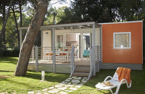 "Maxi Caravan Ischia", 3-room mobile home 29 m2. Practical furnishings: living/sleeping room with 1 sofabed, dining table and satellite TV. Exit to the terrace. 1 room with 1 french bed (160 cm). 1 room with 2 beds (80 cm). Kitchenette (4 gas rings, freezer). Shower/WC. Air-conditioning. No heating option. Terrace, porch. Terrace furniture, deck chairs (1). Facilities: children's high chair, baby cot. Internet (WiFi, extra). Parking. Please note: non-smokers only. IT061088B3LUIBMCPY