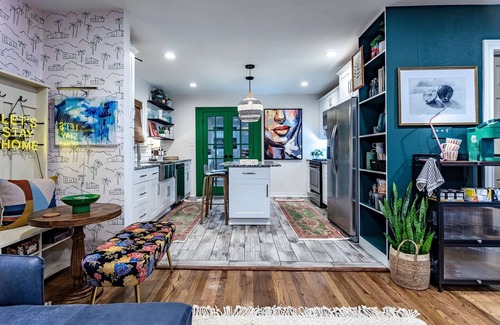 Step into style, comfort, and creativity at McKenzie Corner, a thoughtfully reimagined 1950s ranch home located on a quiet, privately fenced corner lot in the heart of Waco. This amenity-rich retreat blends mid-century charm with modern design, offering a truly elevated stay for families, friend groups, or business travelers.