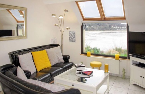 Modern, beautiful, very comfortable single-family house "Meeresblick". In the district of Petit Port 800 m from the centre of Saint Michel-en-Grève, on the outskirts, 8 km from the centre of Plestin-les-Grèves, 11 km from the centre of Lannion, in a quiet, sunny position on a slope, in the residential district, 150 m from the sea, in a cul-de-sac, south facing position. Private: beautiful, well-kept garden 1'000 m2 (not fenced) with lawn and wildlife garden, courtyard. Children's playground (swing), parking (for 3 cars) on the premises. Shop 700 m, supermarket 7 km, bicycle rental 1 km, sandy beach 800 m. Sailing school 5 km, tennis 1 km. The owner does not accept any groups.