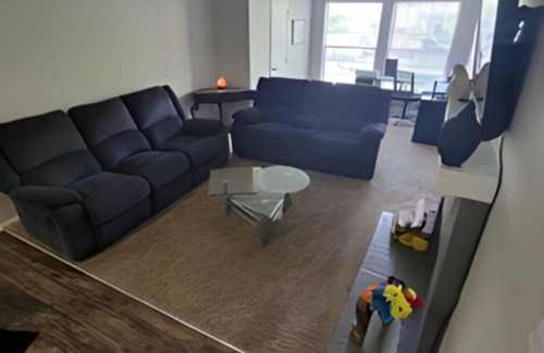 Serenity is a fully furnished 2 masters suite unit in a private neighborhood equipped with private entrance, Household cleaning supplies, Smart TV w/streaming apps, in unit washer and dryer, Fireplace, in unit Work area, Prayer/Mediation corner, Monthly candle of choice and monthly flower delivery.