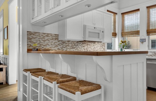 Located just 2 Homes from the Beach Walkover, this adorable beach cottage features an amenity packed vacation home sure to exceed your every expectation. Mellow Yellow offers not one but TWO sets of VIP beach loungers for use by guests in season, 2 bicycles and even a golf cart that can be added for a small additional fee.