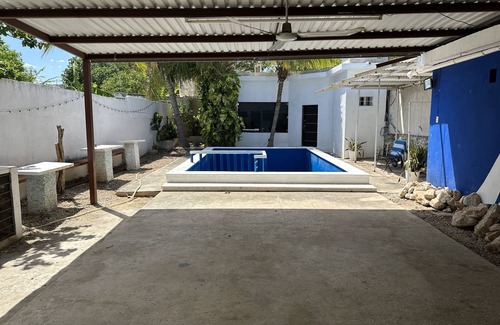 Relax with the whole family at this peaceful place in Merida. This house is 15 minutes from "El Centro" and it is located in a traditional colonia that will allow you to absorb the true culture of Merida.. The AC units placed through the house as well as the refreshing pool provide a comfortable place in a very hot city. The room in the back is not included in the rental.