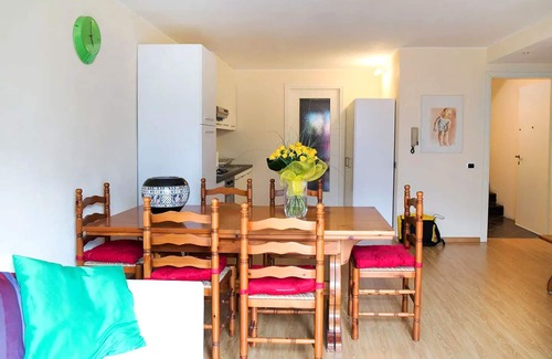Private parking, fully equipped and supplied. The apartment is about 60 square meters with a bedroom with a double bed. A baby cot is available in the room. A bathroom with shower and washing machine. A large living room with a fully furnished kitchen with fridge, oven and complete set of equipment. There is a sofa bed for 2 people.