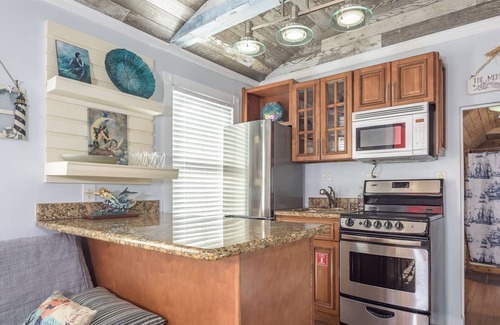 Mermaid Cove features four separate units (two cottages and two apartments), each with a private entrance and all decorated and furnished in charming tropical fashion. The units surround a central courtyard with outdoor patio furniture and a large gas BBQ grill. Mermaid Cove allows you to gather as a group, but also have privacy. With accommodations for up to 12 people, it is perfect for extended families, a bunch of friends, or bachelor, bachelorette, and wedding parties.