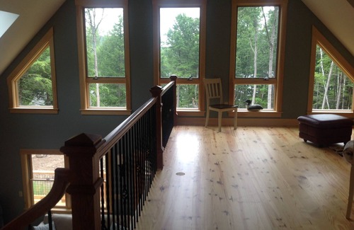 Bright and sunny with lots of windows, wood floors throughout, open concept living area with living room, kitchen, dining area and large loft. Three bedrooms offer privacy for 6. One bedroom on the first floor with a queen bed, two bedrooms on second level-one with a queen and other with twin beds. Couches in loft and living room allow additional sleeping for two.