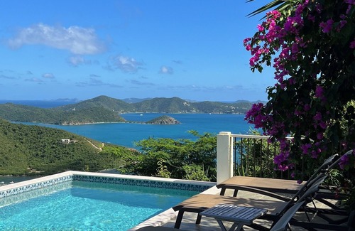 Mesmerizing Views. Cooling, Comfortable Tradewinds: Coconut Breeze is the villa you have been searching for: expansive views over Coral Bay, East End, Sir Francis Drake Channel, BVI and the open sea beyond. Gentle breezes will keep you in perfect comfort with rarely the need for the A/C installed in all bedrooms. Although you may never wish to leave the relaxing covered porch and picture-postcard view over the pool and island-studded sea, you are only minutes away from the beautiful north shore beaches.