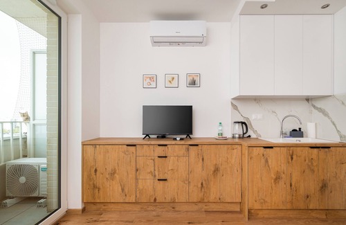 Metro Natolin 10th Floor Apartment features a living room with a sofa bed and a kitchenette, a bedroom with a comfortable double bed, a bathroom, and a balcony where guests can relax and enjoy their morning coffee or an evening glass of wine. It offers a wide range of top-class amenities, including free WiFi, a TV, an iron, a hairdryer, a fridge with freezer, an oven, a dishwasher, an induction hob, a kettle, and kitchen utensils. In addition, the apartment is equipped with air conditioning, ensuring maximum comfort, especially during hot summer days. Guests also have access to a parking space in the underground garage.