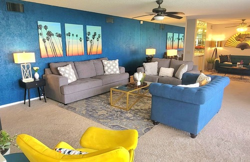 Mid-Century 2bd/2ba Condo Sleeps 8, on Golf Course is located in Indio. Mid-Century 2bd/2ba Condo Sleeps 8, on Golf Course provides accommodation, featuring Internet, Laundry, Air Conditioner, among other amenities. This Condo features Internet, Laundry, Air Conditioner, to make your stay a comfortable one.