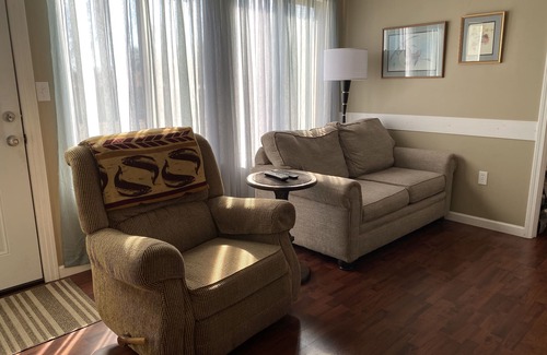 To the right is your master bedroom which includes a queen bed and twin bed as well as the first or 2 full bathrooms. To the left is the second bedroom which has 2 twin beds and it's own full bath. You'll find the cleanest bedding and freshest towels anywhere!