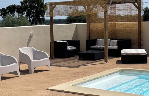 (Text automatically translated) Recent construction with pool classified 3 star hotel ideally located on the wooded hills sea and mountain views, quiet, tastefully decorated, comfortable, fully equipped with appliances, air ... sea rivers leisure shops doctors csp in a radius of 4 6 km .