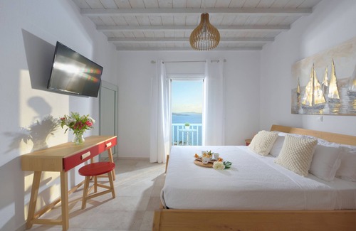 The room features a comfortable bed,modern amenities and a stylish design,all within a bright and airy atmosphere. You can enjoy stunning views of the sea right from your window,making it the perfect spot to unwind after a day of exploring the island!The room also includes a well-maintened bathroom with all the essentials,ensuring your stay is as convenient as it is enjoyable!