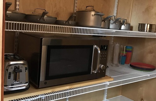 The kitchen has stainless steel appliances (including dishwasher) and is fully-supplied with all the cooking pots, pans, utensils you'll need to have a wonderful home cooked meal away from home!