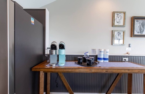 Inside, the home is designed for relaxation and entertainment. The well-equipped kitchen features a gas stove, perfect for preparing delicious meals. Gather in the living room, which includes a TV and Bluetooth speakers for your entertainment needs. Sleeping arrangements are comfortably designed for up to 10 guests, with two master bedrooms featuring king beds and en-suite bathrooms for privacy and relaxation. Additionally, there is a queen bedroom and a bunk room with two sets of bunk beds, ideal for children or additional guests. Families with young children will appreciate the availability of a pack n play and high chair.