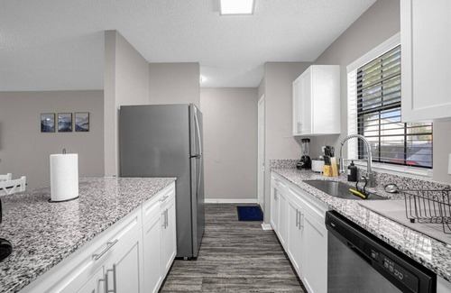 Indulge in comfort in this 2 bedroom 2 bathroom home centrally located in Tampa. Situated near the University of South Florida and Busch Gardens, this unit features a spacious living area with a 50" Roku TV, 2 memory foam queen beds, as well as a 32" Roku TV in the master bedroom. A reserved parking spot is included at no extra cost. Take advantage of amenities like the community pool, game room, and gym. Need to work remotely? A designated workspace is provided for your convenience.