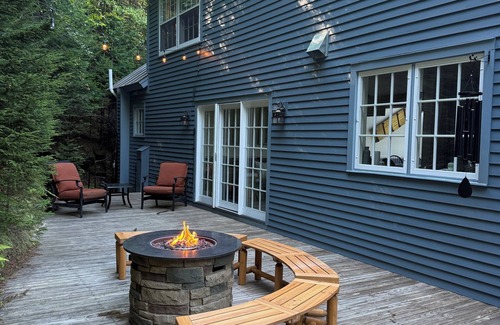 Just 3 minutes from Mt. Snow and 5 minutes from the charming village of Wilmington. Our vacation home is rustic yet elegant, warm & comfortable, the perfect place to enjoy the Deerfield Valley with family & friends. A gourmet kitchen complete with granite, a stainless steel 6 burner gas range, a stainless Kitchen-Aid refrigerator, soaring 2 story great room with floor to ceiling windows, gas fireplace, custom crafted barnwood dining table & 2 primary suites complete the main floor. The primary suite has a gorgeous bath with radiant heat floor, body sprays, free-standing tub & cedar lined closed. Our 2nd primary bedroom features an elegant electric fireplace, home office space & streaming tv. Upstairs you will find 2 bedrooms that each sleep 3 on gorgeous log beds with an updated shared bath with a heated floor. The lower level features NEW wall to wall carpeting, 50 inch flat screen tv with sectional sofa, sauna, fitness room with eliptical, treadmill, pilates & yoga gear, selection of free weights, billiards table, indoor spa & full bath. Please visit Mt. Snow Vacation House on FB for more pics & local area info. Our home sleeps 10, is family friendly and you will find a video library, assortment of games, books and toys.