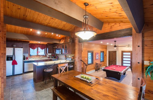 Enjoy the perfect combination of CO cabin and luxury accommodations. The lot has 110 feet of gold metal fly-fishing on the Blue River and it's just minutes to your favorite ski resorts. This renovated cabin is located in Silverthorne about 5 miles from I 70. You can white water raft, hike, walk, and kayak in the summer. The Summit County Bike Path crosses the backyard for access to miles of biking and walking. In winter you can ski/board, tube, snow mobile and sleigh ride. There are restaurants and outlet malls within walking distance. Everything that Summit County has to offer is right at hand, but when your home you feel like you are miles away from it all. The cabin has beautiful views of the mountains off the back deck where you can jump in the jetted hot hub with 6 of your close friends or family to enjoy the sound of the river. There is a garage to keep your car warm in the winter so you can drive 10 minutes to Keystone or Copper Mountain, 15 minutes to Arapaho, Breckenridge or Loveland and 25 minutes to Vail. The furnishing is high quality, with a stone fireplace and sectional couch in the living room to watch DirectTV or DVDs on the 55 inch TV. There is wifi throughout the cabin. The upstairs is all knotty pine with ceramic tiled floors connecting the half bath, dinning room and completely modern kitchen featuring granite counter tops, a flat cook top, microwave and stove to the outdoor grill. The dining room can comfortably seat 10 people to enjoy your home cooking. The new addition with mudroom and billiards room with pool table. The downstairs master bedroom has a king bed and HD flat screen plus a double shower and heated floors in the master bath. There are queen beds in the other two bedrooms with plenty of closet space for all. Please note that in winter we only rent Saturday to Saturday, but summer rentals are more flexible.