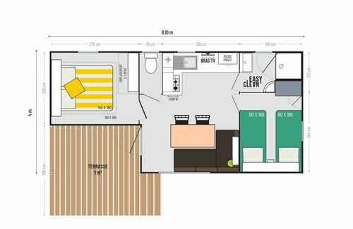 The family home has 2 bedrooms, 1*2-person bedroom with double bed and 1 single rooms with 2* 1- person bed. We have already made the beds for your comfort and 1 set of towels is available per person. The kitchen is equipped with crockery and cutlery, a senseo coffee machine, microwave, fridge with a small freezer. The living room is furnished with a sitting area near the TV and a dining table is an extension of the kitchen. The bathroom is spacious, with a shower, sink and towel rack. The toilet is a separate room. The mobil home has its own terrace with garden furniture. BBq is only allowed at your mobil home in the garden with your own BBq set. Each mobil home has its own parking space, for 1 car.