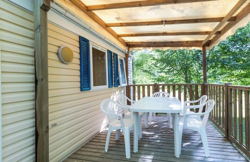 Mobile Home 'La Clairière' with Shared Pool, Private Terrace and Wi-Fi | House in Saint-Pompon