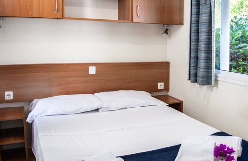 The mobile homes, consisting of living room with kitchenette, two bedrooms, two shower rooms, TV (SKY from July to September) and air conditioning, offer enough space for up to 4 + 1 people.