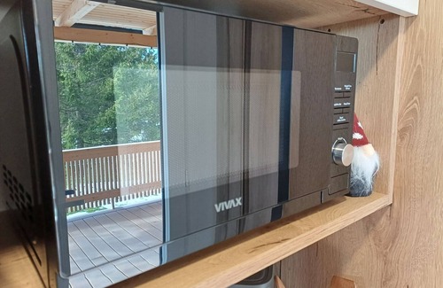 The Mobile Home with Terrace is located on a hill in the near vincinity of a lush forest and pasture for horses which can be viewed from the roofed terrace. The forest offers guests paths to hike and observe wild animas in their natural habitat as well as pick what nature has to offer from berries to mushrooms. In the close proximity there is the Iška river source. From the nearby hills there are views towards Snežnik, Kamink Alps and on clear days the view extends all the way to Julian Alps.