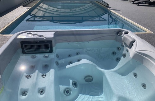 An outdoor pool and a hot tub are on site. Other recreational amenities include a sauna.