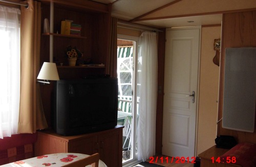 Mobilhome located at the campsite "Lake and Mountain" VERCHAIX 1 km from SAMOENS, with 2 separate bedrooms, one with a bed of 140 and the other with two beds of 80 easily collectable.