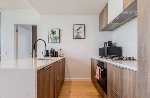Enjoy the best of both worlds with this stylish, modern 2-bedroom apartment in the city's best location. Just 2 minute walk to Nelson Place, where you can also have a picnic with a view of the bay and city, and a 5 min walk to the train station which will take you directly into CBD. There is free street parking. The apartment has free wifi and a queen size bed. The kitchen has a fridge, microwave oven dishwasher crockery cutlery glassware.