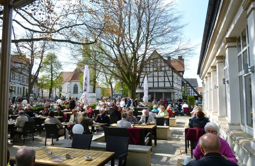 It is located in a listed half-timbered house from the 18th Century directly on the historic market square.