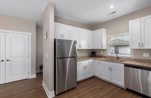 Welcome to our trendy and modern 2-bedroom condo in Wyoming, Michigan, a stone's throw away from downtown Grand Rapids. Experience the perfect fusion of contemporary style and playful vibes. With a king bed, a twin over full bunk bed with twin trundle, and a dining area, it's perfect for a fun-filled stay. Enjoy entertainment with TVs in every room and the convenience of a 2-car garage. Your chic and vibrant escape awaits! We have multiple units and the furniture and decor may vary.